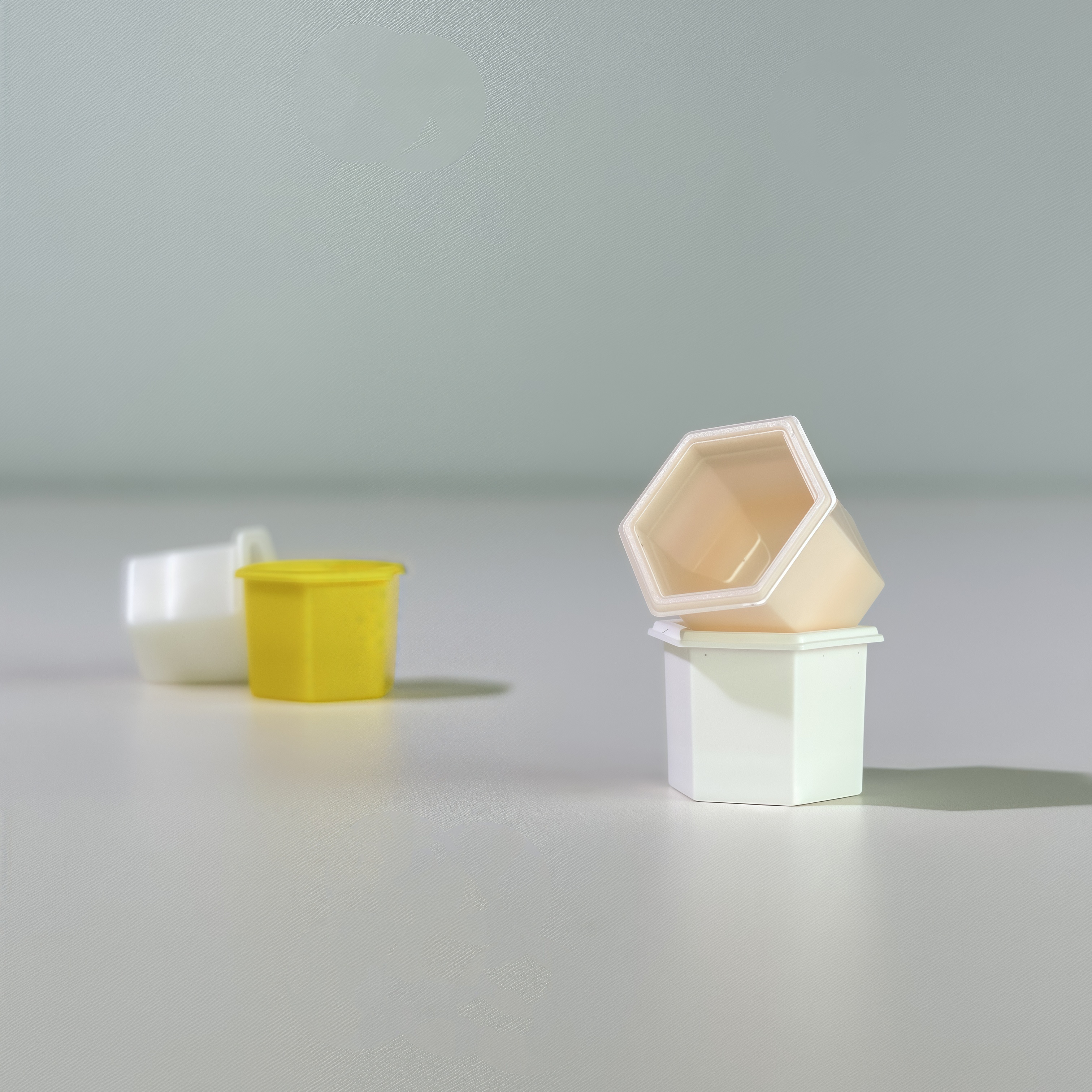 فنجان آرایشی پلاستیکی PP شش ضلعی,فنجان 1.3 میلی‌لیتری با درب فویل آلومینیومی,درپوش دستمال مرطوب پلاستیکی PP